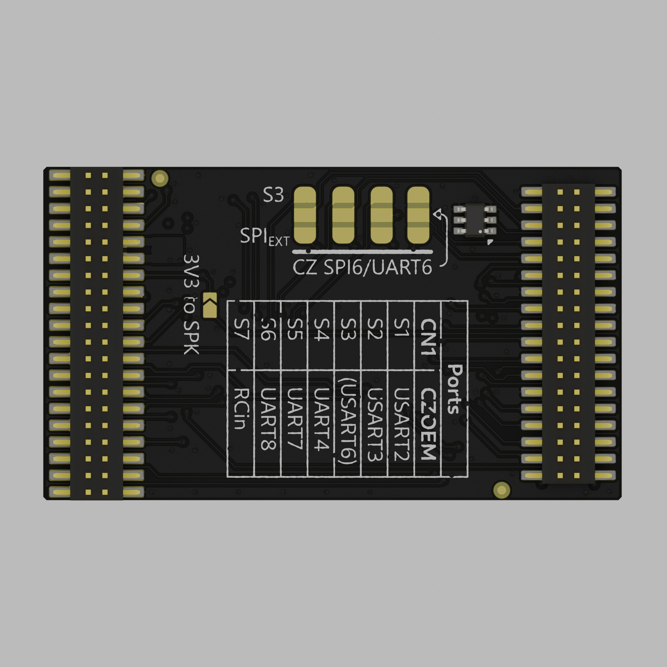 The CN1 has more ports enabled than the CZ OEM so this board has a set of solder jumpers to select the preferred mapping to CN1.
