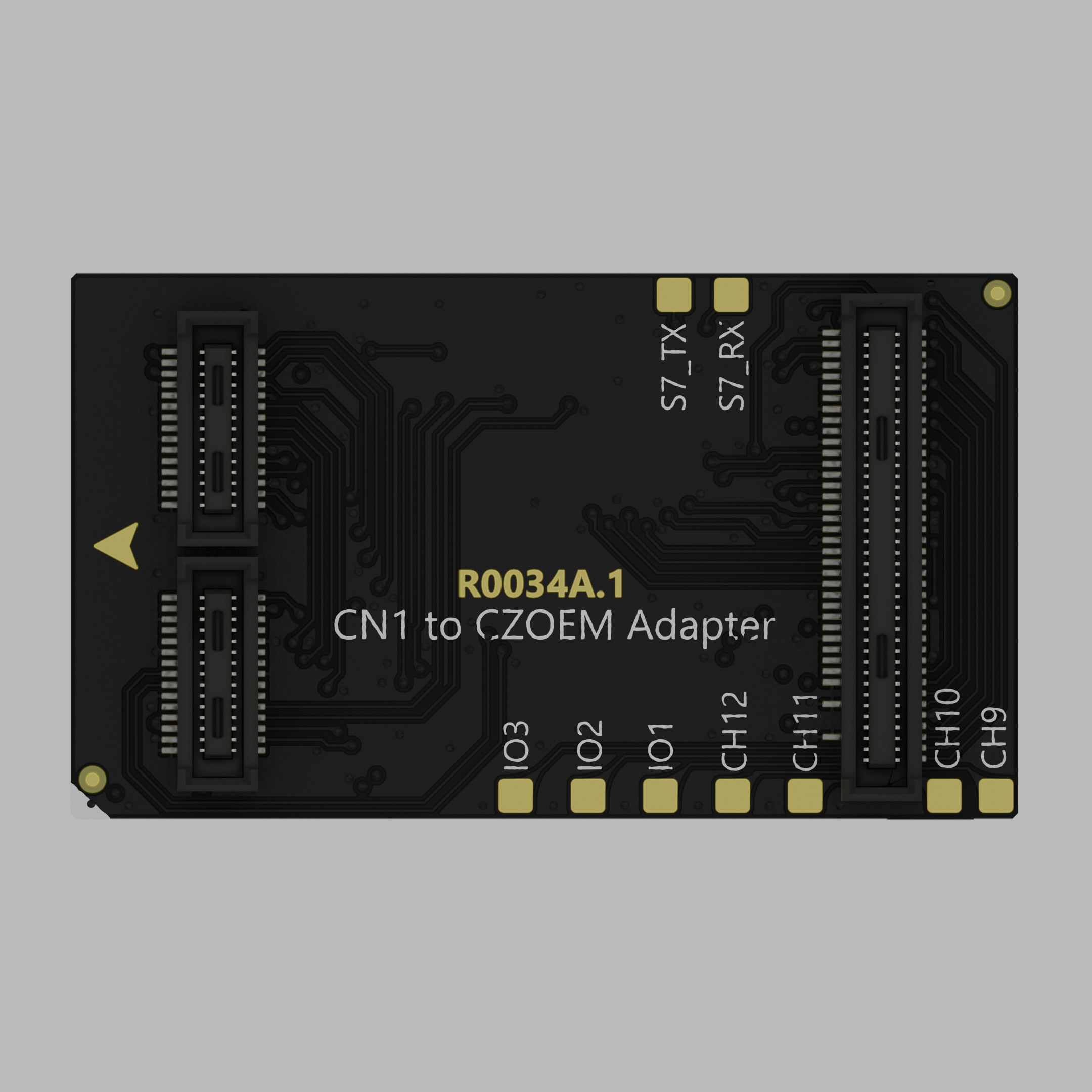 The CN1 to CZ OEM Adapter is an adapter board that enables compatibility between the CN1 flight controller and Control Zero OEM carrier boards. It maps the CN1 connector pinout to the Control Zero OEM interface, allowing the CN1 to be used as a drop-in flight controller solution within Control Zero based systems without requiring custom cabling or board modifications.